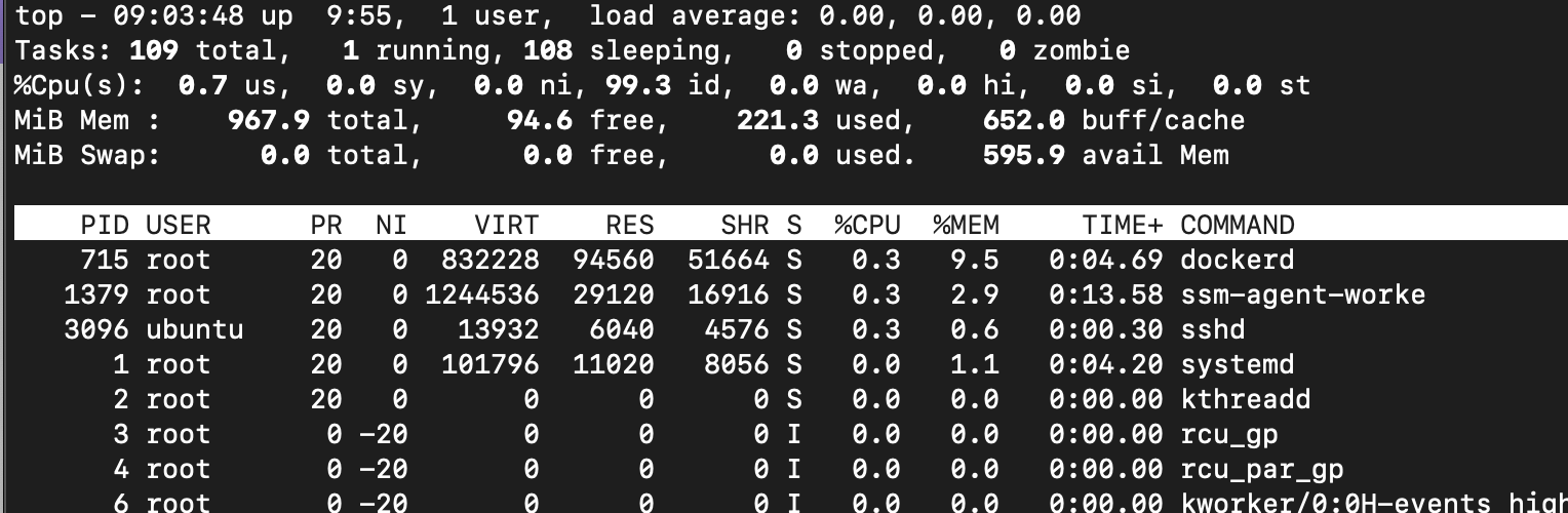 us: 사용자 시간, sy : 시스템(커널)시간, id: 유휴, wa: I/O 대기, st: 하이퍼바이저가 뺏어간 시간