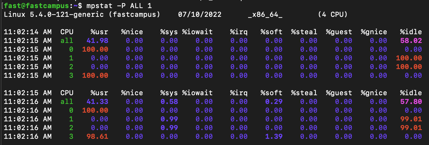 - mpstat : CPU별 통계