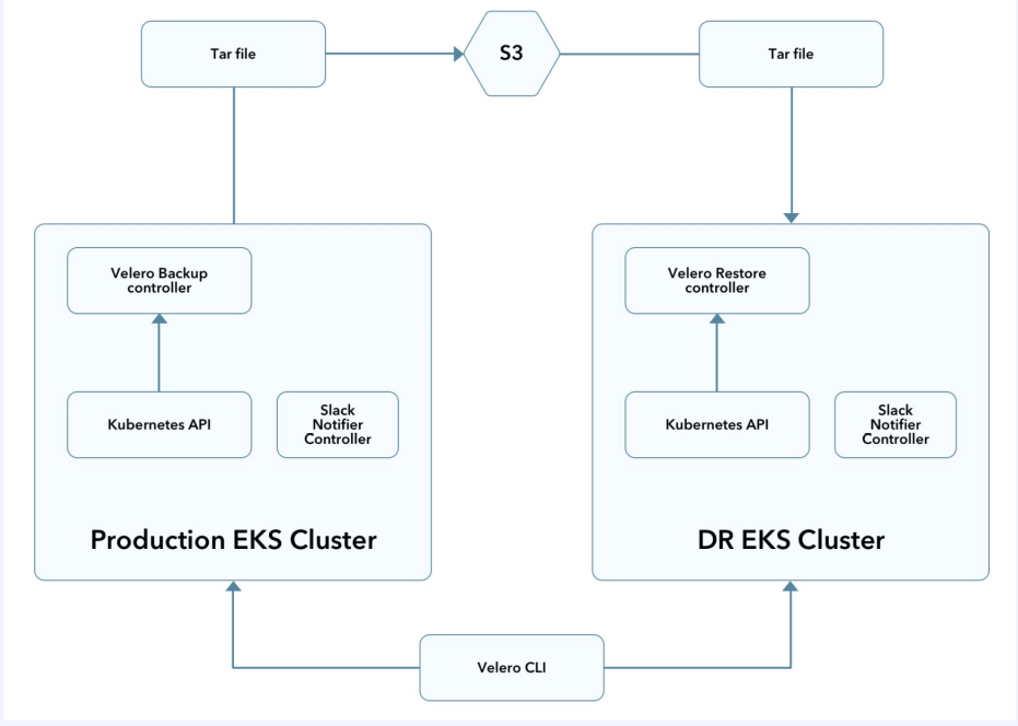 Velero는 클러스터의 시스템 리소스들이 무너진 경우의 무중단에 가까운 disaster recovery 등에 활용된다.