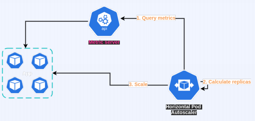 HPA는 Metrics Server에 metrics를 얻기 위해 쿼리를 보내고
