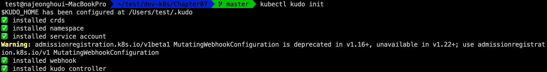 $ kubectl kudo init