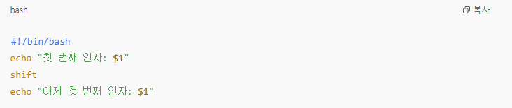 - shiftλ₯Ό νμ©νλ©΄ μ λ ₯λ μΈμλ€μ μμ°¨μ μΌλ‘ μ²λ¦¬νλ μ μ°ν μ€ν¬λ¦½νΈ μμ± κ°λ₯.