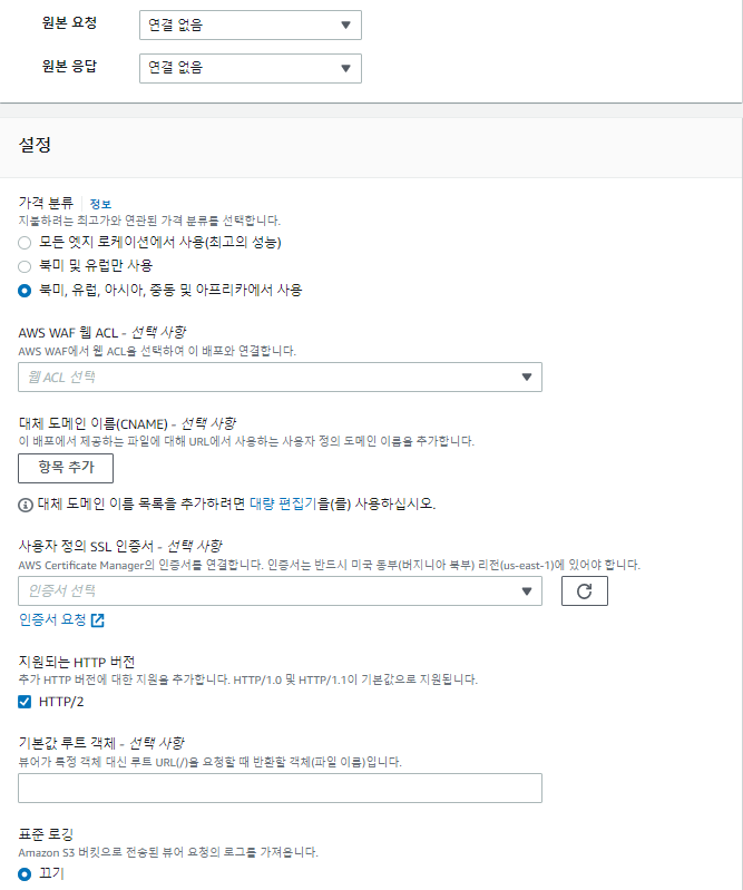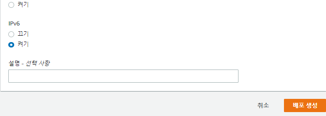 1. CloudFront로 들어가서 배포 생성을 누른다.