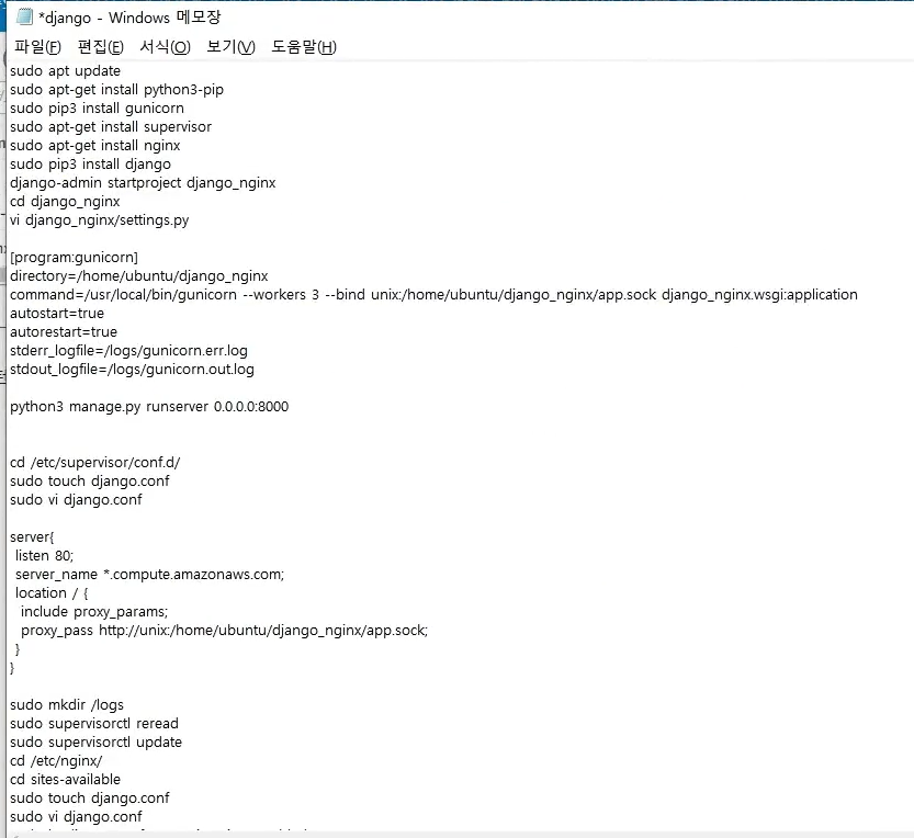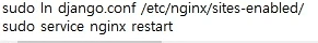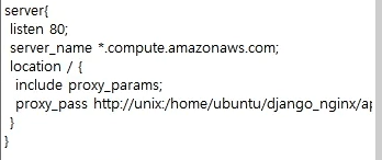sudo vi django.conf까지 왔다면 넘겼던 이 부분의 코드를 치자
