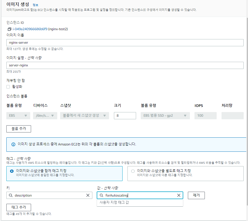 1. 전에 만든 nginx-test ec2인스턴스에 대한 이미지를 생성하자