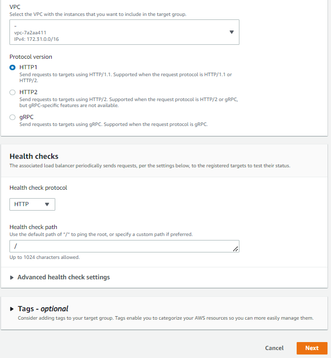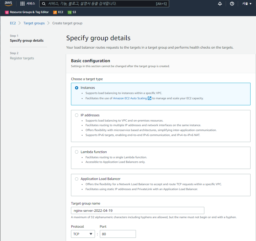 3. 대상그룹을 만든다. 세팅은 아래와 같다.