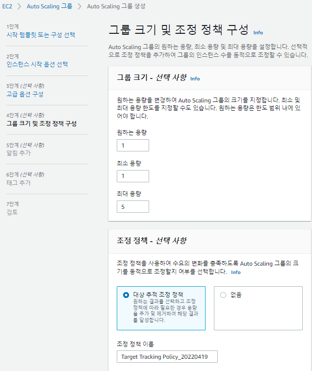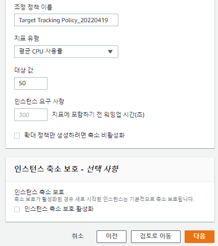 알림은 추가하면 이메일 등으로 오토스케일 상황을 알 수 있다. 이번엔 하진 않았다.