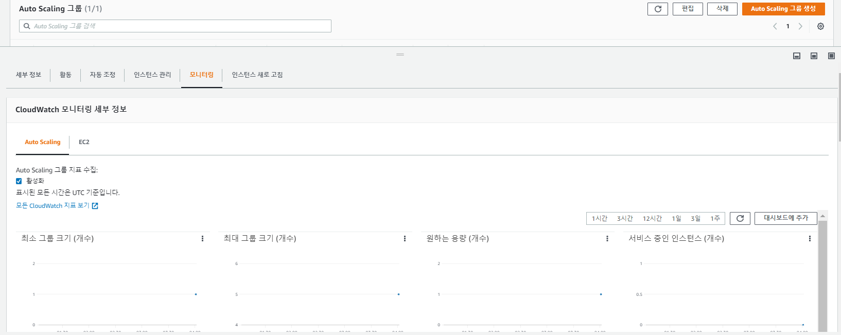 모니터링에선 cloudwatch을 통해 상황을 볼 수 있다.