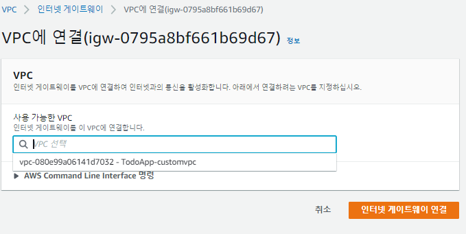 그리고 우리가 만든 VPC를 선택해서 연결하자