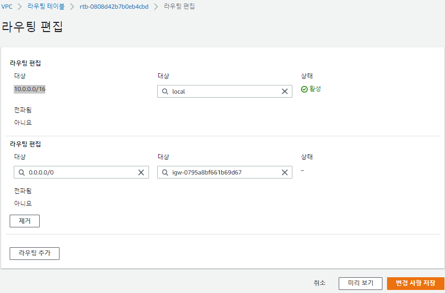 public subnet은 인터넷과도 연결이 돼야한다. 따라서 라우팅 편집을 해주자
