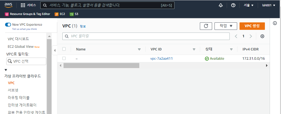 우선 VPC를 생성하기 위해 aws VPC 관리콘솔로 들어가자
