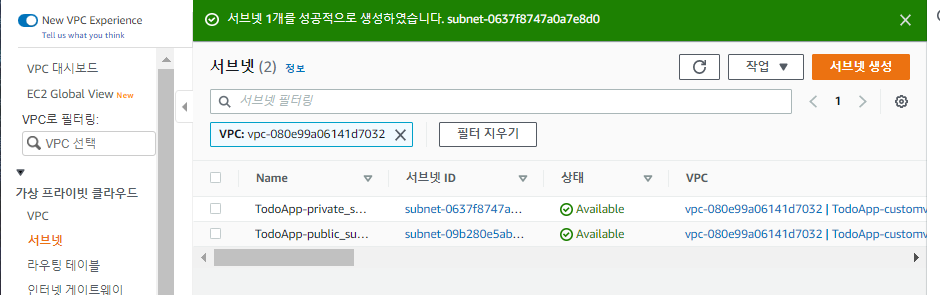 이젠 VPC안에 들어갈 서브넷을 만들어보자