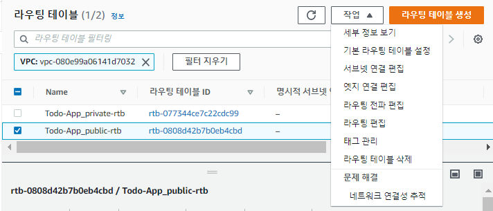 또한 우리는 각 라우팅 테이블이 public subnet과 private subnet에 따로 따로 연결되길 원한다.