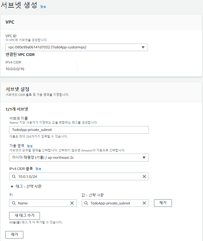 private subnet의 가용 영역은 ap-northeast-2c로 설정했고