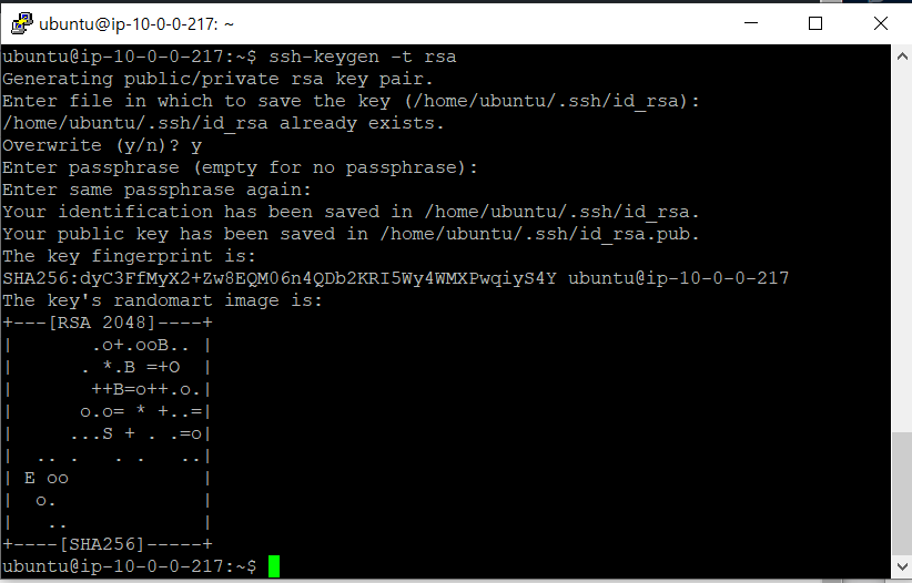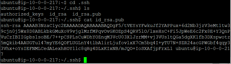 rsa key를 생성하기 위해 전에 만든 public subnet에 있는 ec2 인스턴스에 접속을 해서