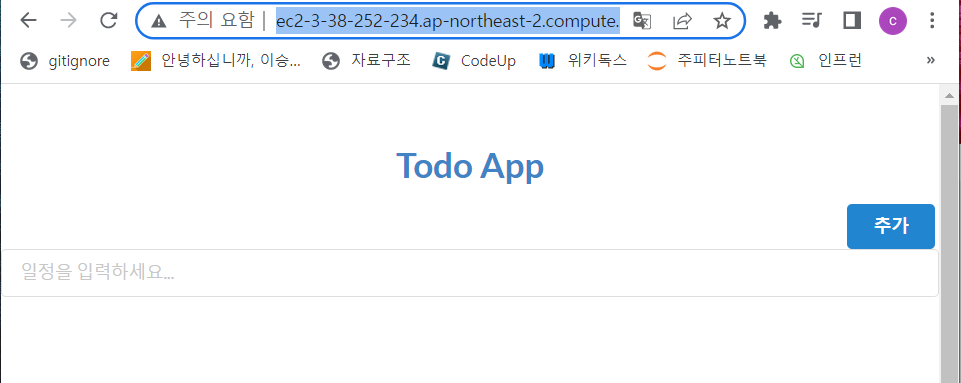 웹브라우저 주소창에 ec2 인스턴스의 퍼블릭 IPv4 DNS + 포트번호를 입력하면 잘 작동하는걸 볼 수 있다.