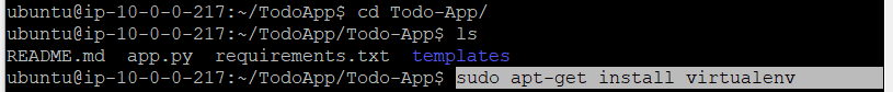 이제 프로젝트를 가상환경에서 사용하기 위해 sudo apt-get install virtualenv 명령어를 입력한다.