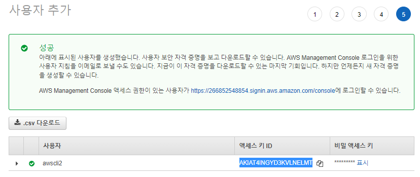 이제 액세스 키 ID값과 비밀 액세스키 값을 얻었다. 복사해서 붙여넣자