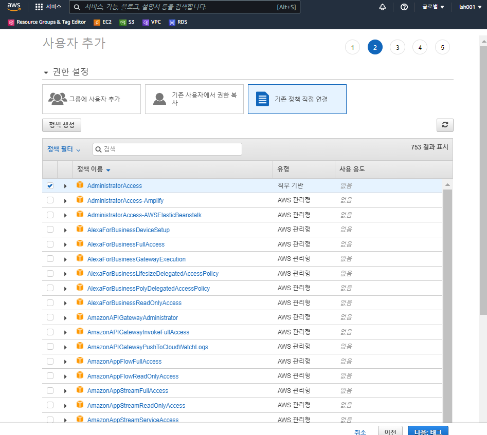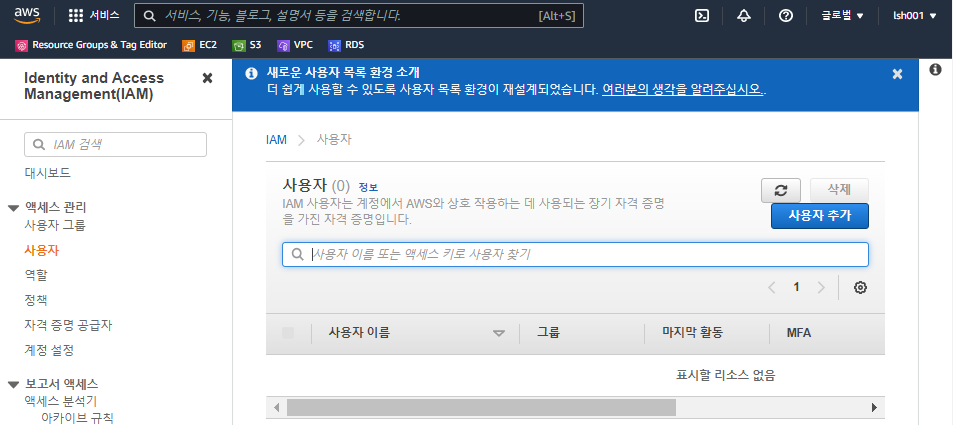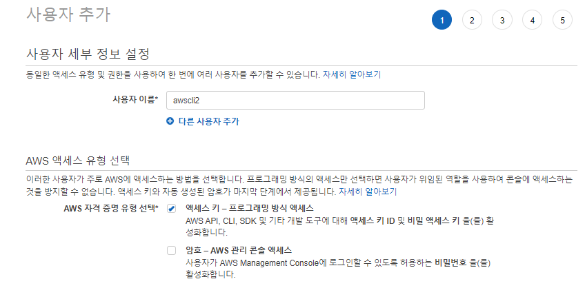 aws IAM의 사용자로 가서 사용자 추가를 하자