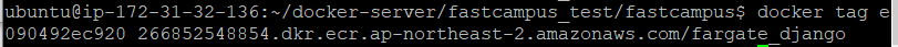 그리고 docker tag [이미지 ID] [AWS ECR URI] 명령어를 입력한다.