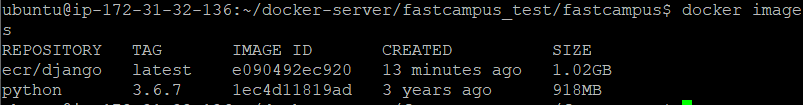 docker images 명령어로 ecr/django의 이미지ID를 알아낸다.