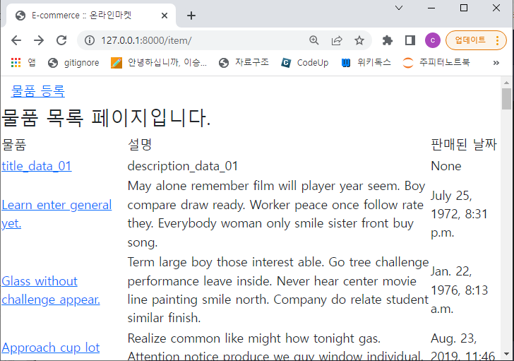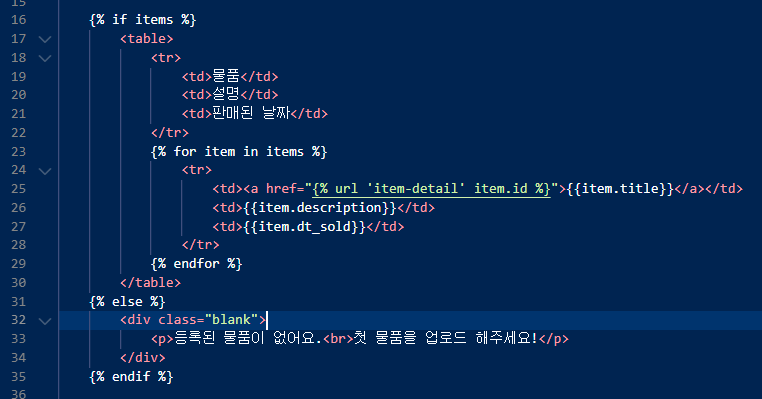 이제 item_list.html에 물품을 등록해달라는 문구를 넣는다,