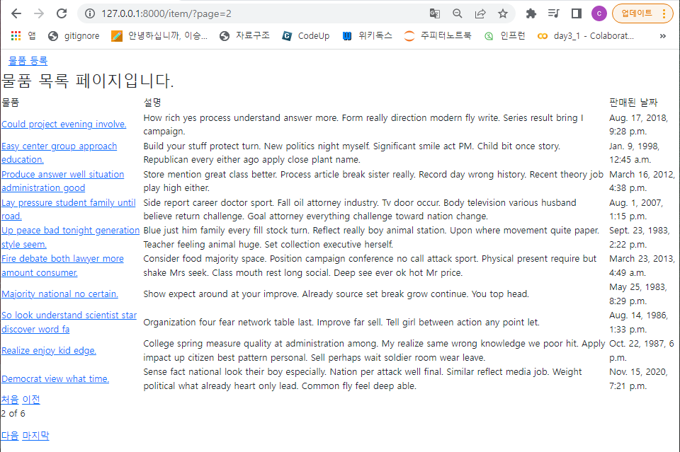 이제 물품을 10개 단위로 나눠서 페이지를 나눠보자