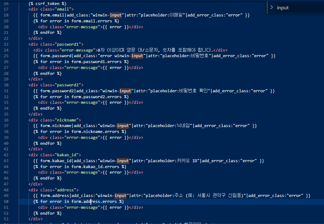 이제 다시 signup.html로 돌아와 widget_tweaks를 로드하자