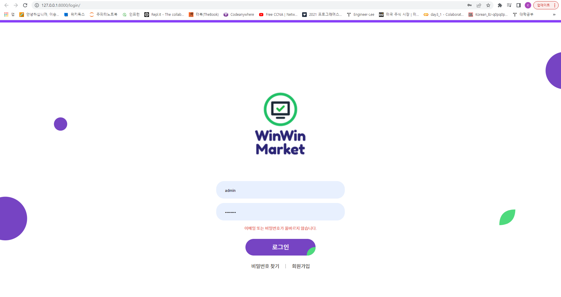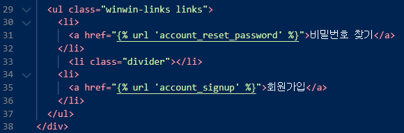 비밀번호 찾기와 회원가입을 누르면 각각의 알맞은 페이지로 이동하도록 url을 설정했다.