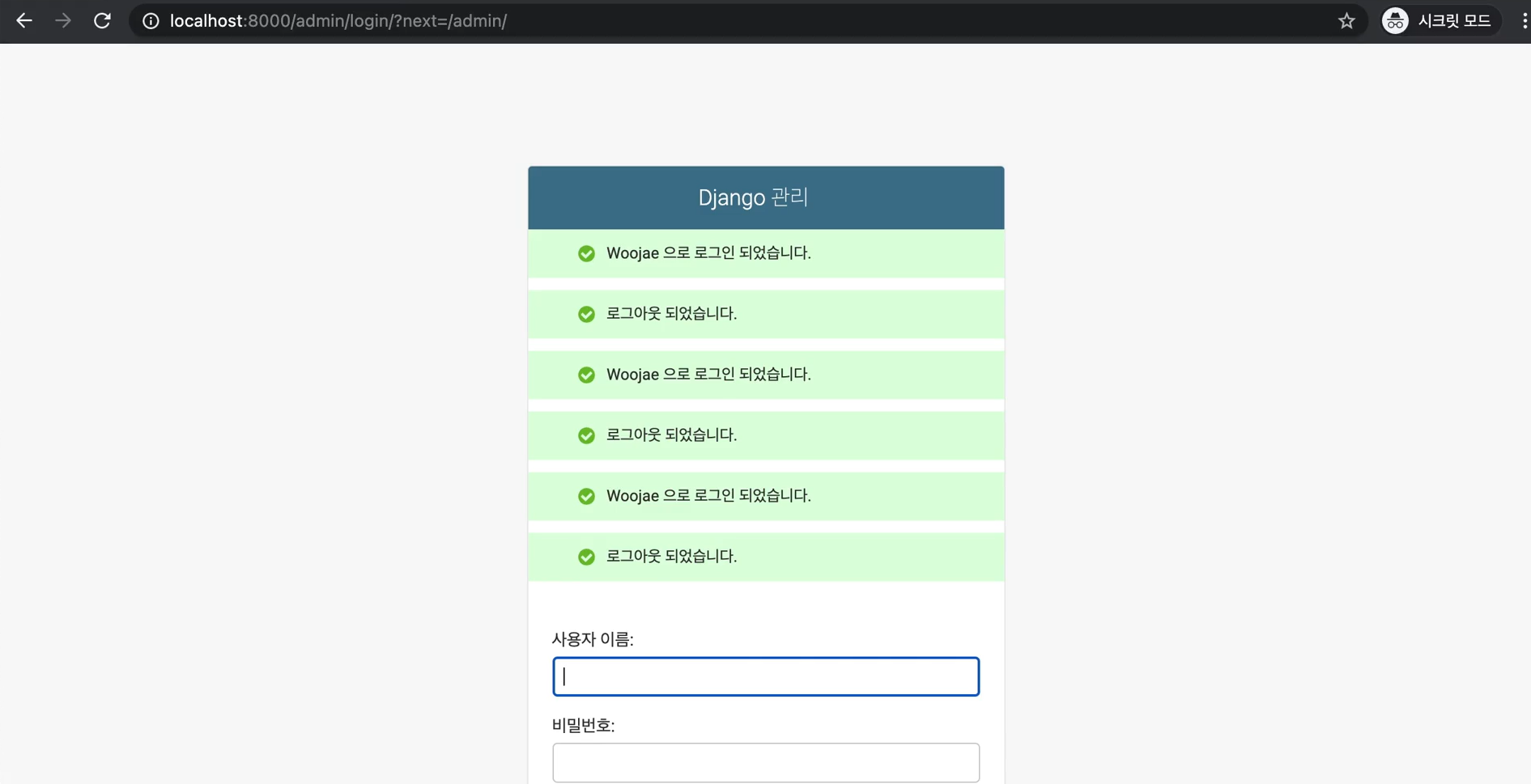 그러나 현재 문제가 하나 있는데 로그인과 로그아웃 등을 반복하고 관리자 페이지로 접속하면 그동안의 기록들이 쌓여있다는거다.
