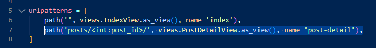 먼저 urls.py에서 상세 페이지의 url설정을 한다.