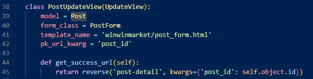 그리고 views.py에서 UpdateView를 이용해서 뷰를 만든다.