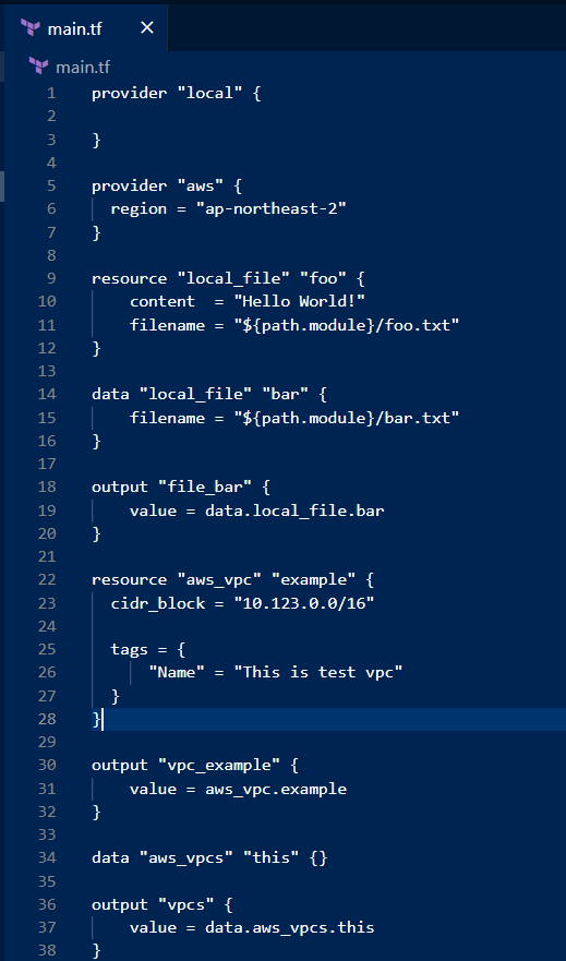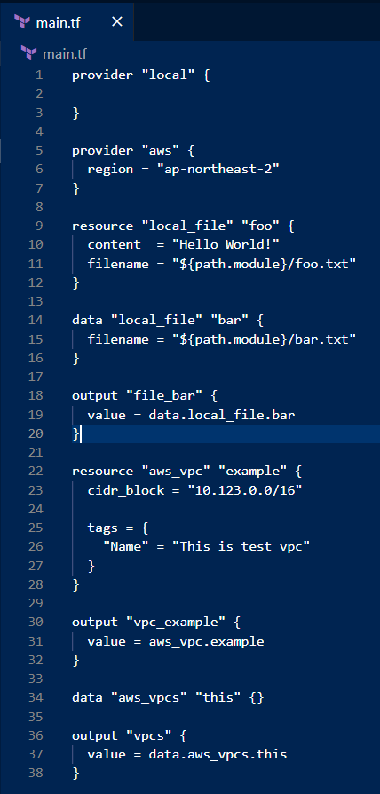 첫 번째로 오는 지시어는 블록의 타입이다. 블록의 역할에 따라 provider, resource, data, variable, output 등 여러 가지가 있다.