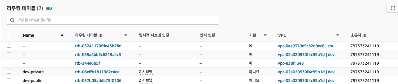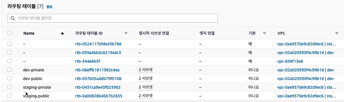 마찬가지로 prod도 똑같이 진행하면 prod에 해당하는 네트워크 리소스들을 생성할 수 있다.