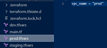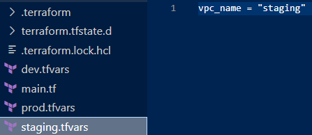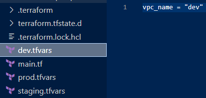 이제 dev.tfvars, prod.tfvars, staging.tfvars 파일을 만들어보자