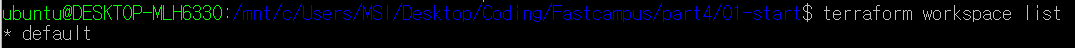 terraform workspace list 명령어는 전체 워크스페이스 목록을 보여준다.