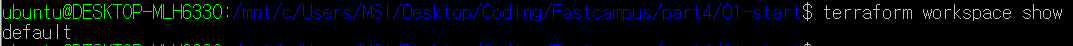 terraform workspace show 명령어는 현재 테라폼 프로젝트에서 설정되어 있는 워크스페이스를 보여준다.