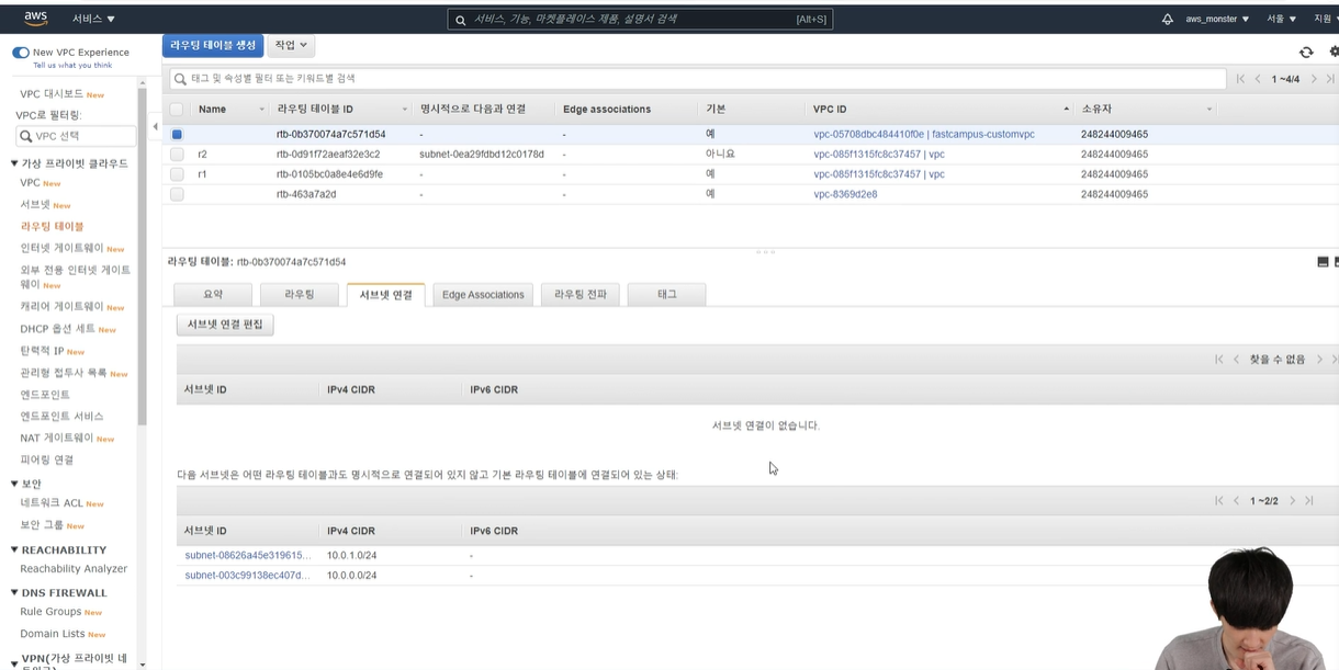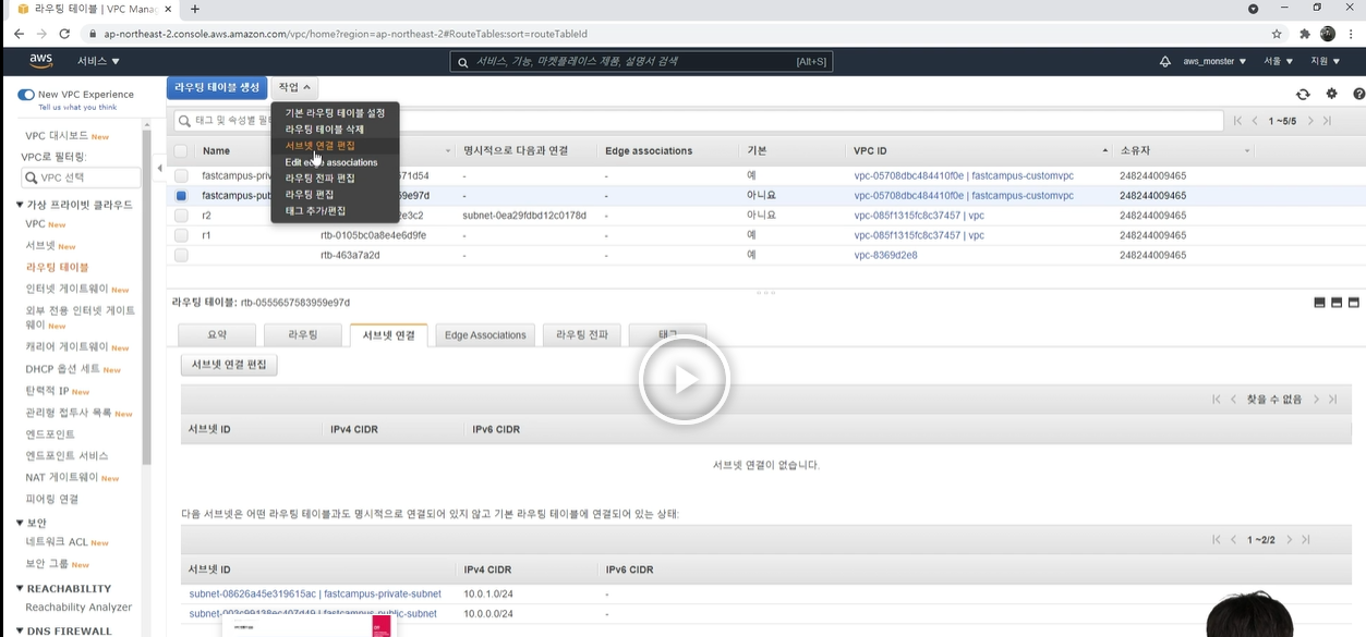 자 이제 fastcampus-public-rtb에 public subnet을 연결 시켜보자.