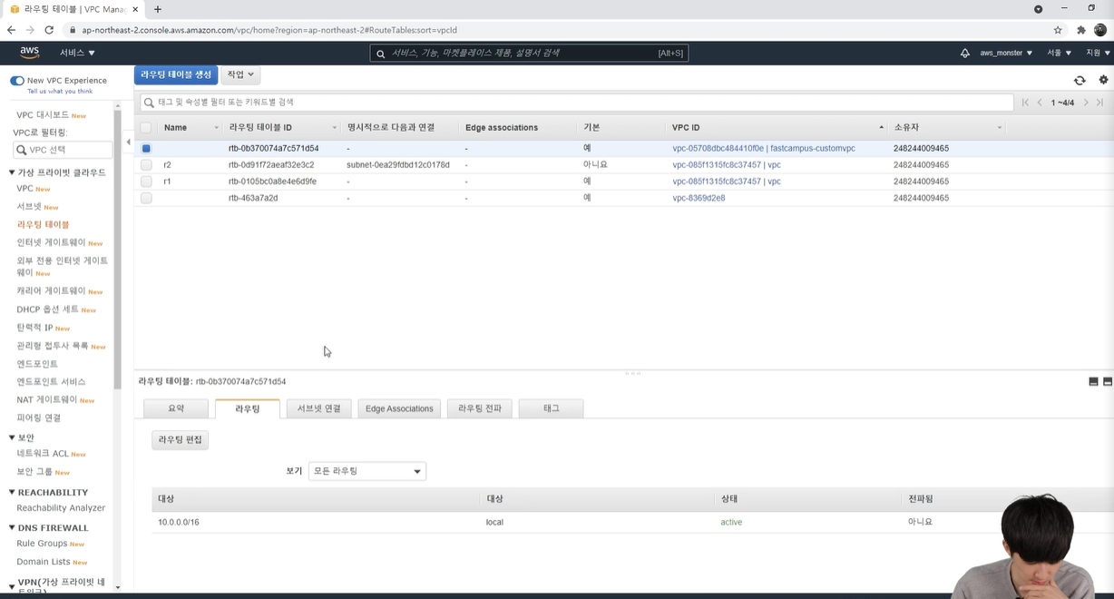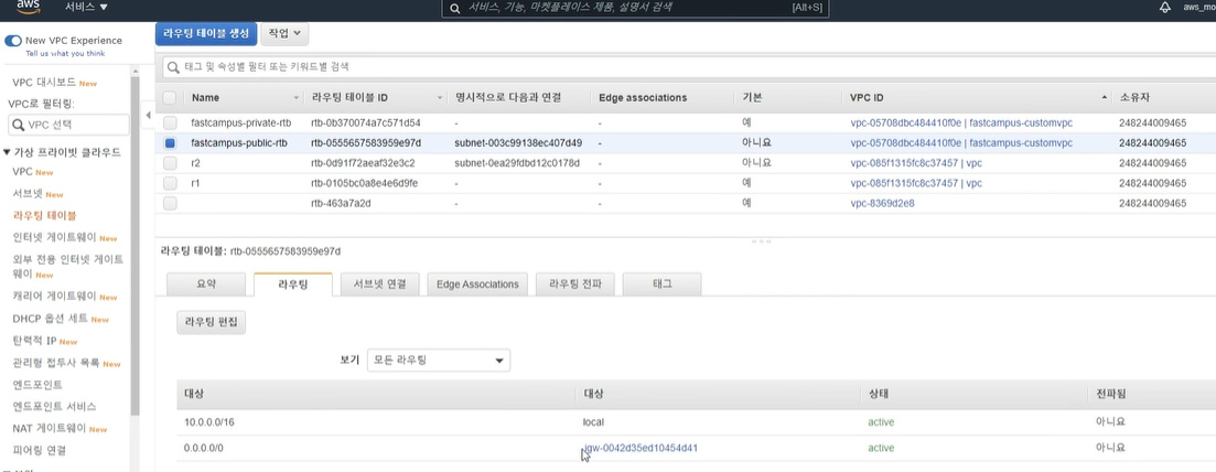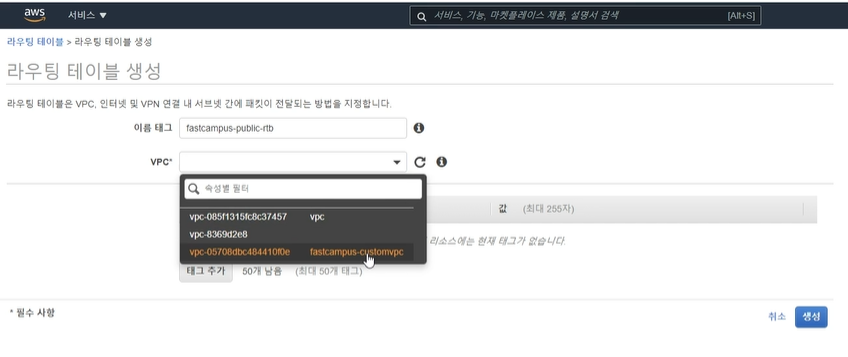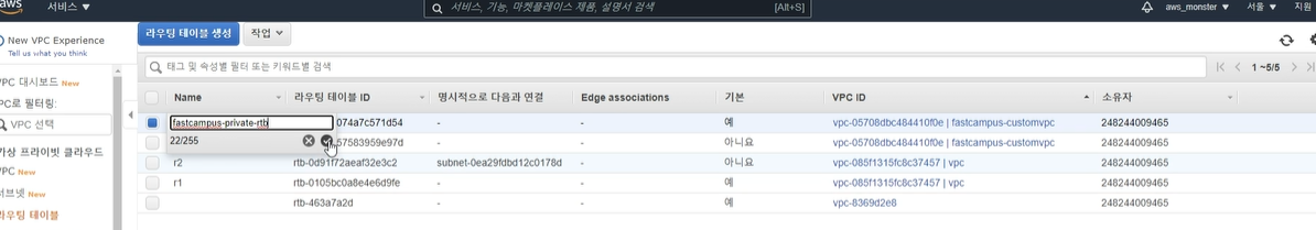 이름을 fastcampus-private-rtb로 바꿔주었다.
