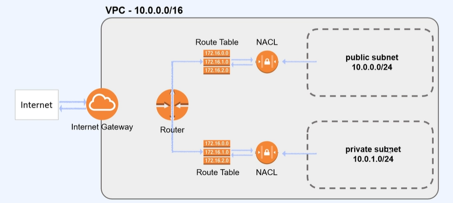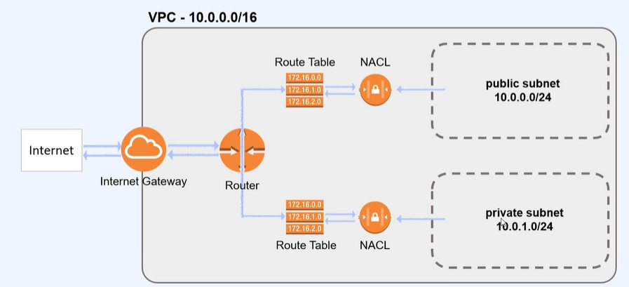 이제 인터넷 게이트웨이와 VPC는 연결이 되었다. 하지만 각각의 서브넷들과는 연결이 되지않았다.