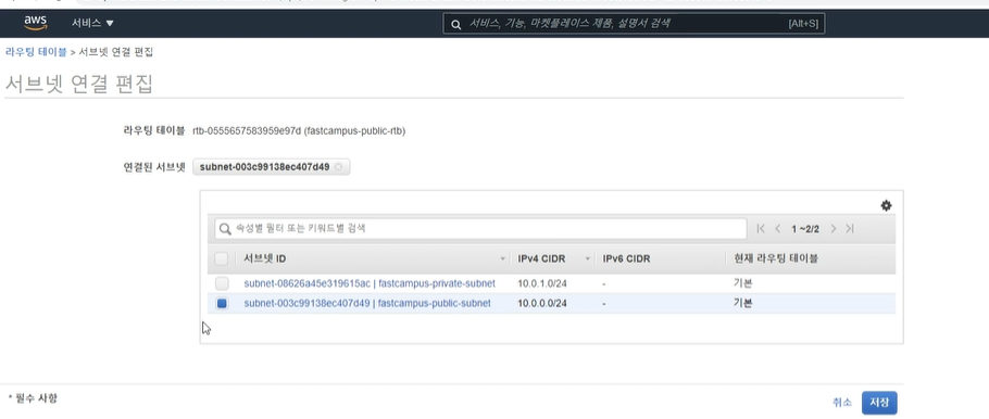 fastcampus-private-rtb은 private subnet을 고르고 저장하자.