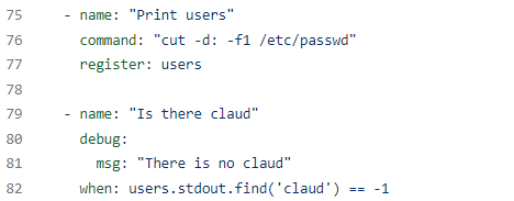 이 예시에서는 사용자 목록을 출력하고 그중에 "claud"가 없을 경우에 "Is there claud"라는 메시지를 출력하도록 했다.