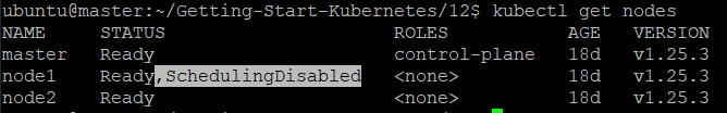 drain 명령으로 인해 노드1은 스케줄링 불가 상태이다.